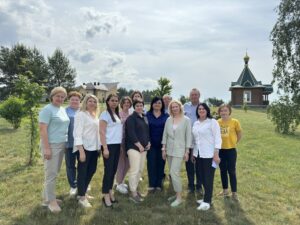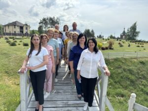 Программа мероприятия началась с посещения административного здания. Заместитель руководителя организации по идеологической работе лесхоза Татьяна Конопляник ознакомила с ведением документации, провела экскурсию по дендропарку.