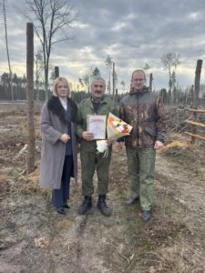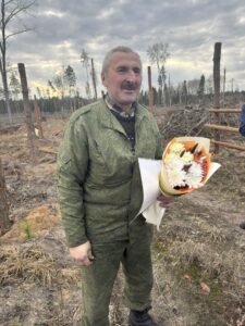 Поздравления с 60-летним Юбилеем принимает лесовод Вольковского лесничества Государственного лесохозяйственного учреждения «Домановский лесхоз» ПАНЮК Чеслав Болеславович! Это важное событие в своей жизни, он встречает на лесосеке. С поздравлениями и пожеланиями здоровья и дальнейших успехов в работе приехали директор лесхоза Дмитрий Ткачук и заместитель по идеологической работе Екатерина Шершунович.