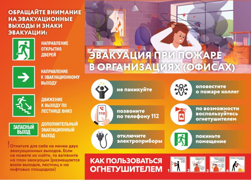 В Республике Беларусь пожаров с трагическими последствиями не допущено, тем не менее вопрос правильной эвакуации людей из зданий при пожаре (как по месту работы, так и в общественных местах, в которых бывает каждый из нас) является актуальным.