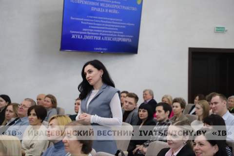 ✅Далее состоялся диалог, идеологи предприятий и их работники откровенно спрашивали у спикера о фейковых роликах в соцсетях, которые так сложно отличить от правдивых. Здесь гуру журналистики Дмитрий Жук посоветовал ко всему подходит с критическим мышлением и холодной головой, а педагогу из аграрного колледжа на вопрос о том, как уберечь подростков от информационных ловушек, гость ответил кратко – говорить с ними, часто, убедительно и без гаджетов и улюлюкивания, а еще быть примером для учеников.
