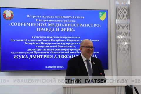 ☝️Гость поговорил с присутствующими о современном медиапространстве, правде и фейках, а также о предстоящем Всебелорусском народном собрании. И первое, что он подчеркнул, это то, что Программа социально-экономического развития Беларуси на 2026-2030 годы, которую впервые планируют утвердить на Всебелорусском народном собрании, – это не про цифры, а про качество жизни обычного человека, такого, как каждый из присутствующих в зале.